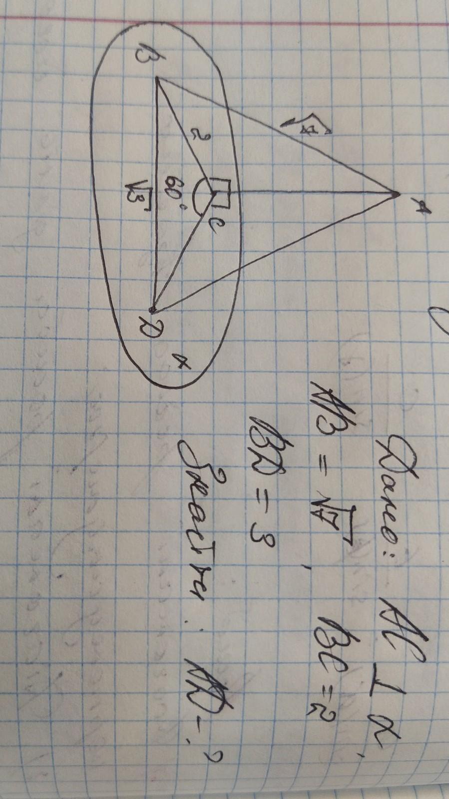 ВД = 3 или корень из трех? у всловии вд=3, а на рисунке ВД = корень из трех