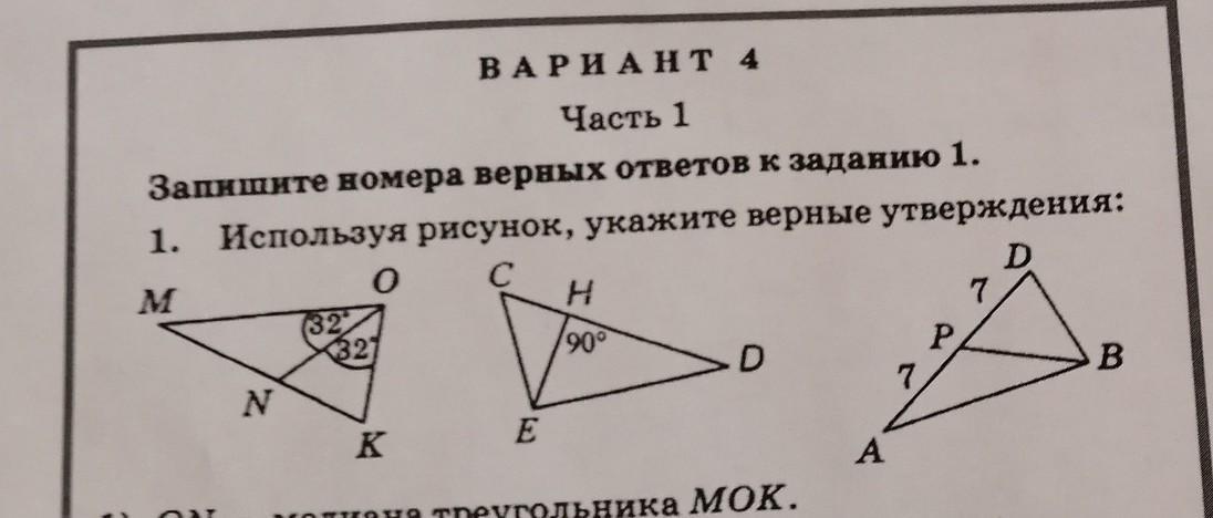 Номера ответов не видно, но могу точно сказать, что ON - биссектриса, HE - высота, РВ - медиана