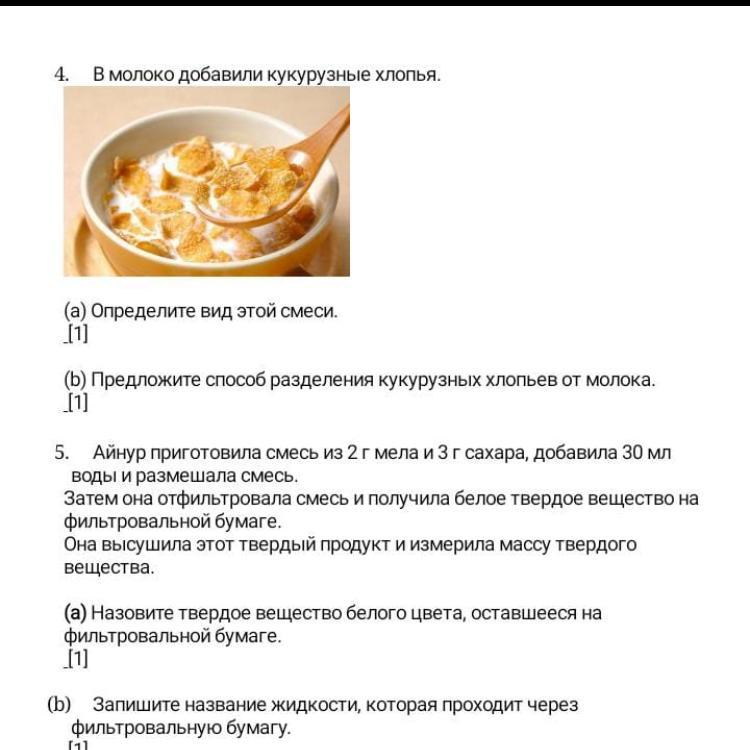б) кукурузные хлопья от молока можно разделить фильтрованием