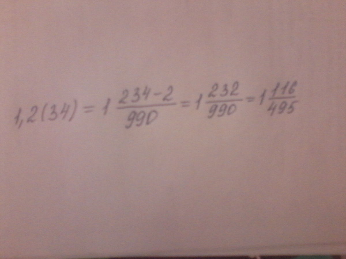 Обозначим x = 1, 2(34) = 2, 23434 ..., тогда 1234 - число до второго периода, 12 - число до первого периода, в периоде 2 цифры, между запятой и первым периодом 1 цифра. Поэтому по правилу имеем: