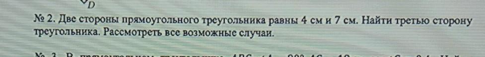 2)случай когда 4см-гипотинуза ,а 7 см-катет:такого варианта не может быть ТК сторона должна быть больше 0