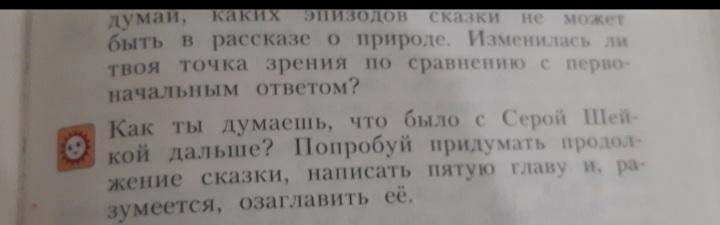 Как ты думаешь, что было с Серой Шейкой дальше ? Попробуй придумать продолжение сказки, написать пятую главу и, разумеется, озаглавить её.