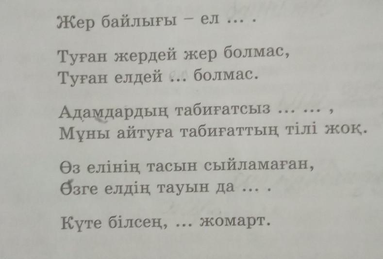 Көп нүктенің орнына қажетті сөздерді қойып , нақыл сөз дерді толықтырыңдар . СРОЧНО ПОМОГИТЕ ОЧЕНЬ СРОЧНО НАДО ИМЕННО ПО ЗАДАНИЕ ПРОШУ СРОЧНО НАДО СЕЙЧАС ПО ЗАДАНИЕ СВЕРХУ