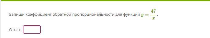 Обратная пропорциональность задаётся формулой y=k/x, где число k≠0 называется коэффициентом обратной пропорциональности. В данном случае k=47. Ответ: k=47.