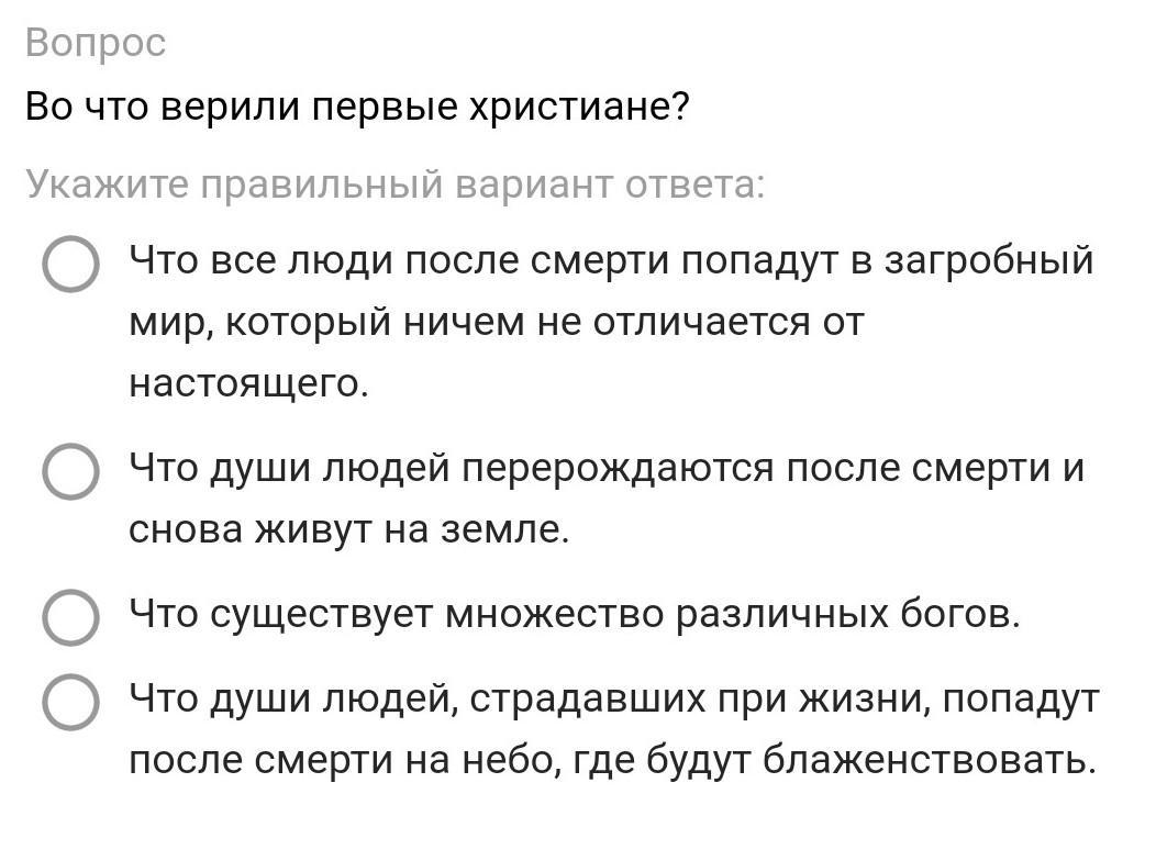 Ответ будет 4. Христиане верили, что мученики являются святыми и попадут в рай