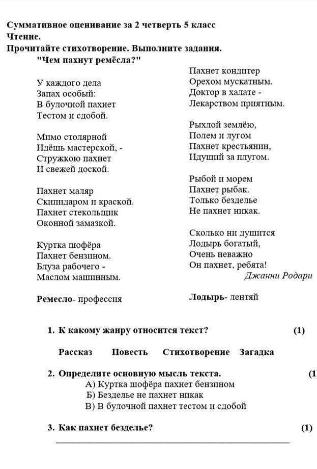 1)Стихотворение, 2) В 3)Безделье не пахнет никак