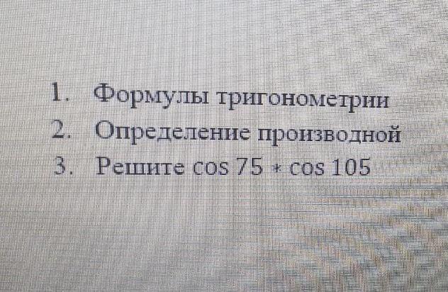 3. cos 105°+ cos 75°=cos(60+45)+cos(30+45)=cos60cos45-sin60sin45 +cos30cos45-sin30sin45=1/2*√2/2-√3/2*√2/2+√3/2*√2/2-1/2*√2/2=0