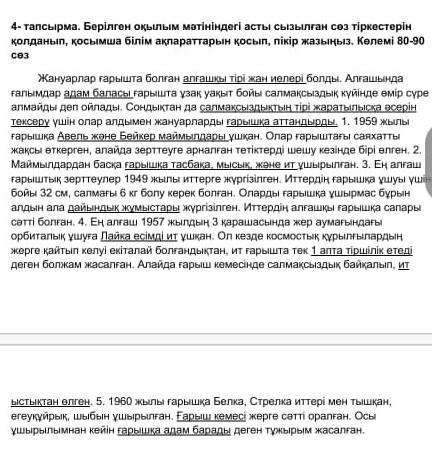Берілген оқылым мәтіндегі асты сызылған сөз тіркестерін қосып,қосымша білім ақпараттарын қосып,пікір жазыңыз.көлемі 80-90 сөз