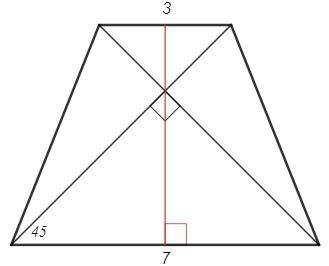 Диагональ равнобедренной трапеции образует с её основаниями угол 45 градусов Найдите высоту трапеции, если её основания равны 3 и 7