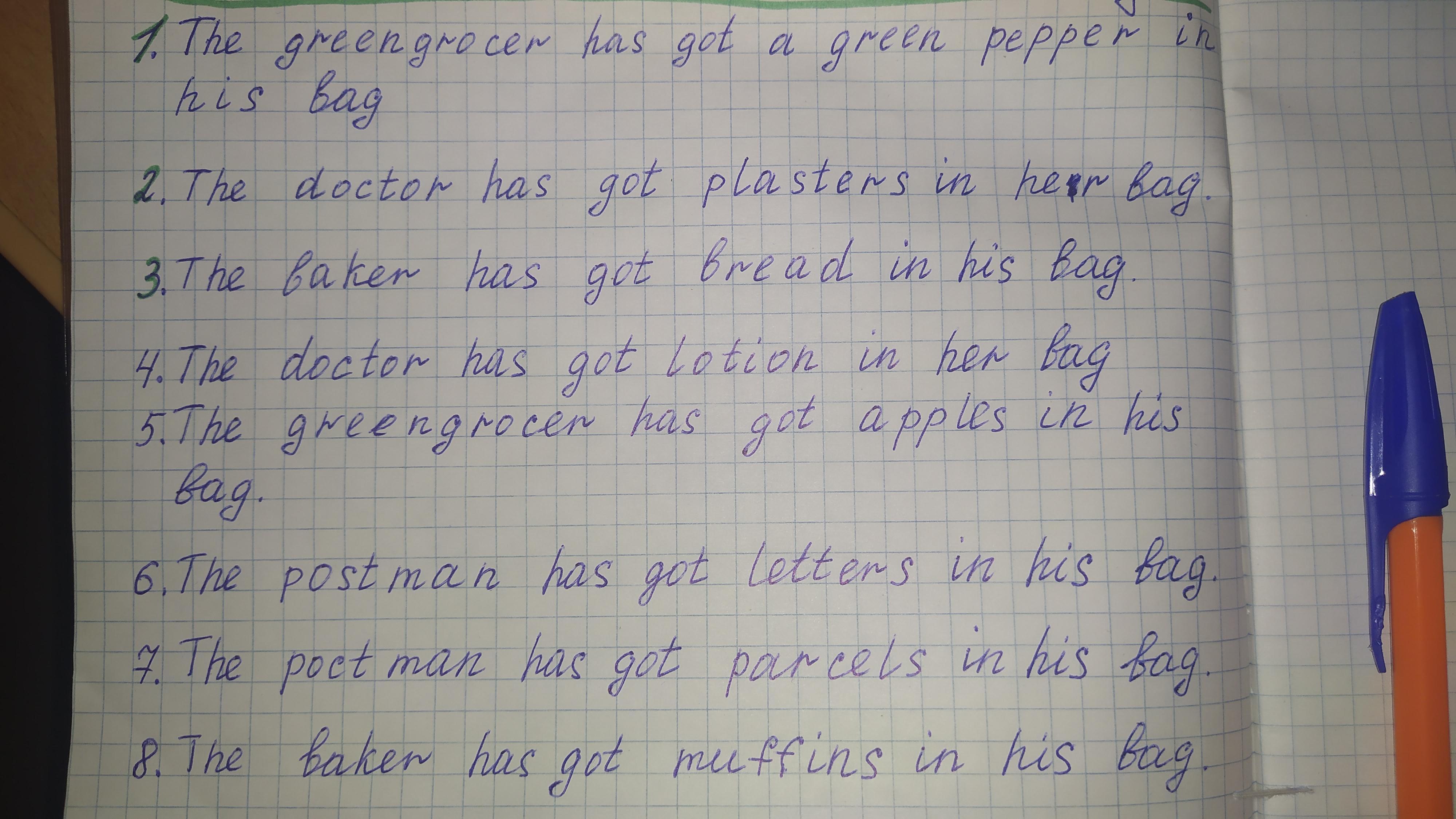 cap bags? Look and match. Then say.