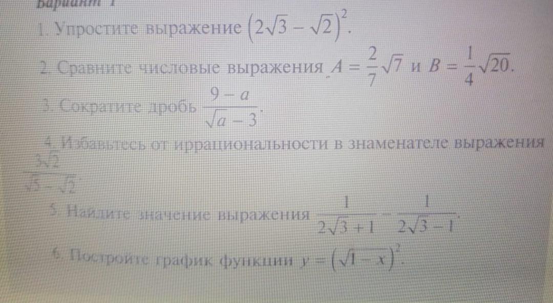 4.домножим числитель и знаменатель на (√5+√2).Тогда в знаменателе( внизу) получим 5-2=3, а в числителе после раскрытия скобок 3√10+6