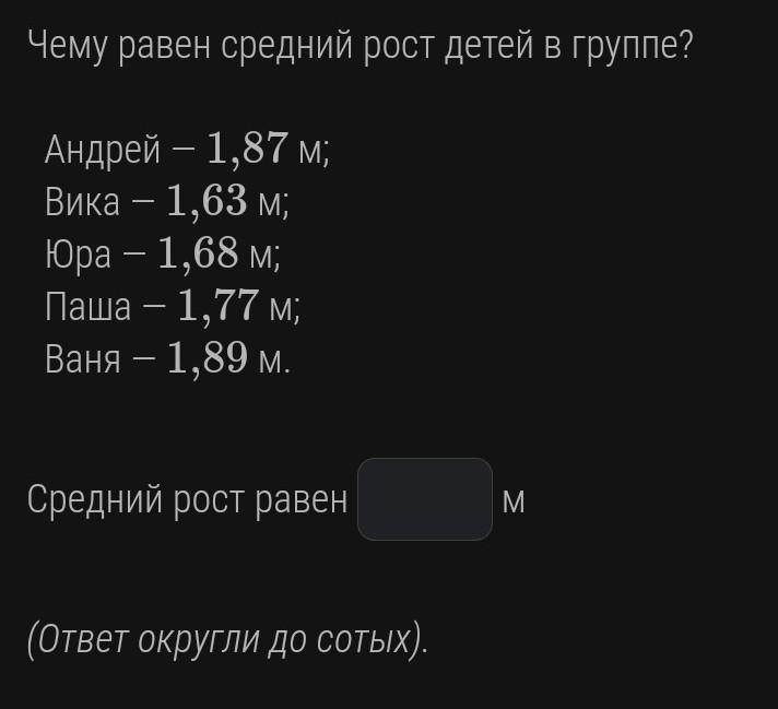 Чему равен средний рост детей в группе?