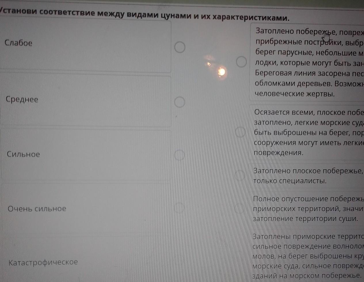 Установи соответствие между видами цунами и их характеристиками.пожалуйста помогите срочно