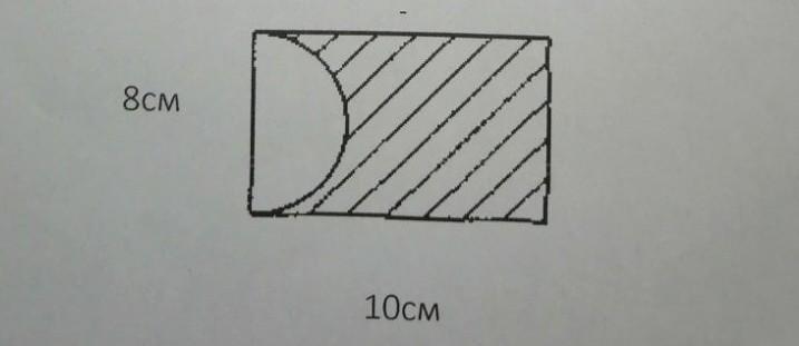 Обчисліть площу заштрихованої фігури, якщо сторони прямокутника 8 см і 10 см (число П округліть до сотих)