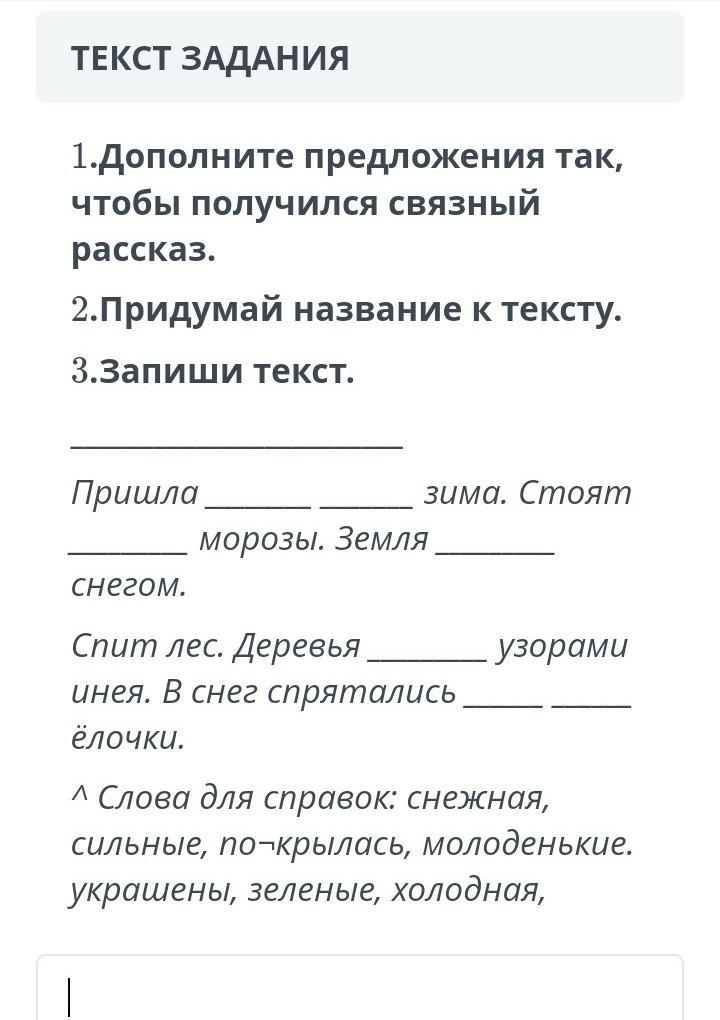 дополните предложения так чтобы получился связный рассказ. придумай название к тексту запиши текст