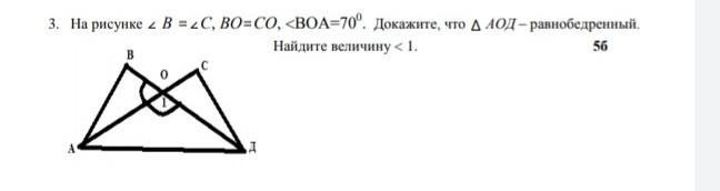 3. На рисунке ∠ В =∠С, ВО=СО, <ВОА=700