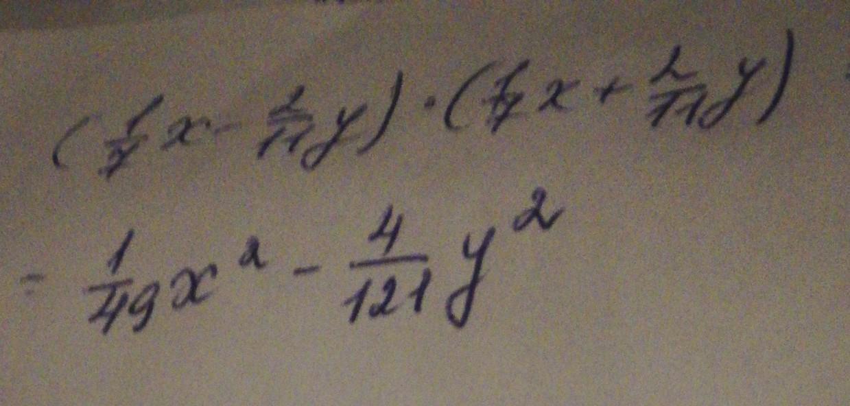Выполни умножение (1\7x−2\11y)⋅(1\7x+2\11y) .
