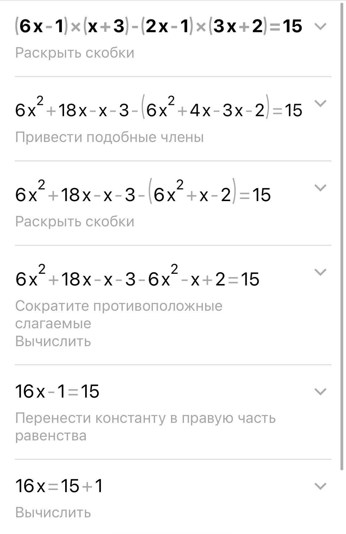 6x*x+6x*3-1*x-1*3-(2x*3x+2x*2-1*3x-1*2)=15