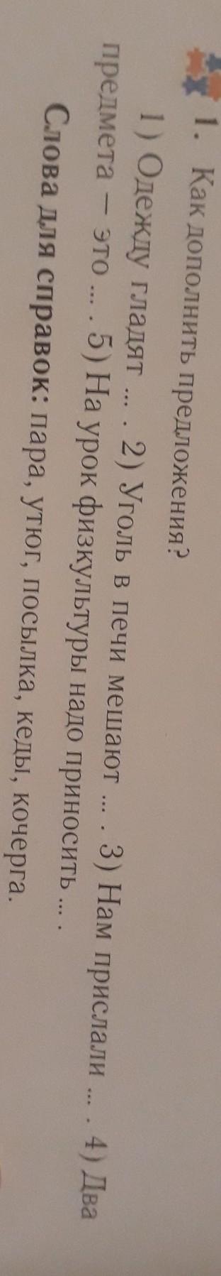 1.утюгом 2. Кочергой 3. Посылку 4 пара 5. Кеды