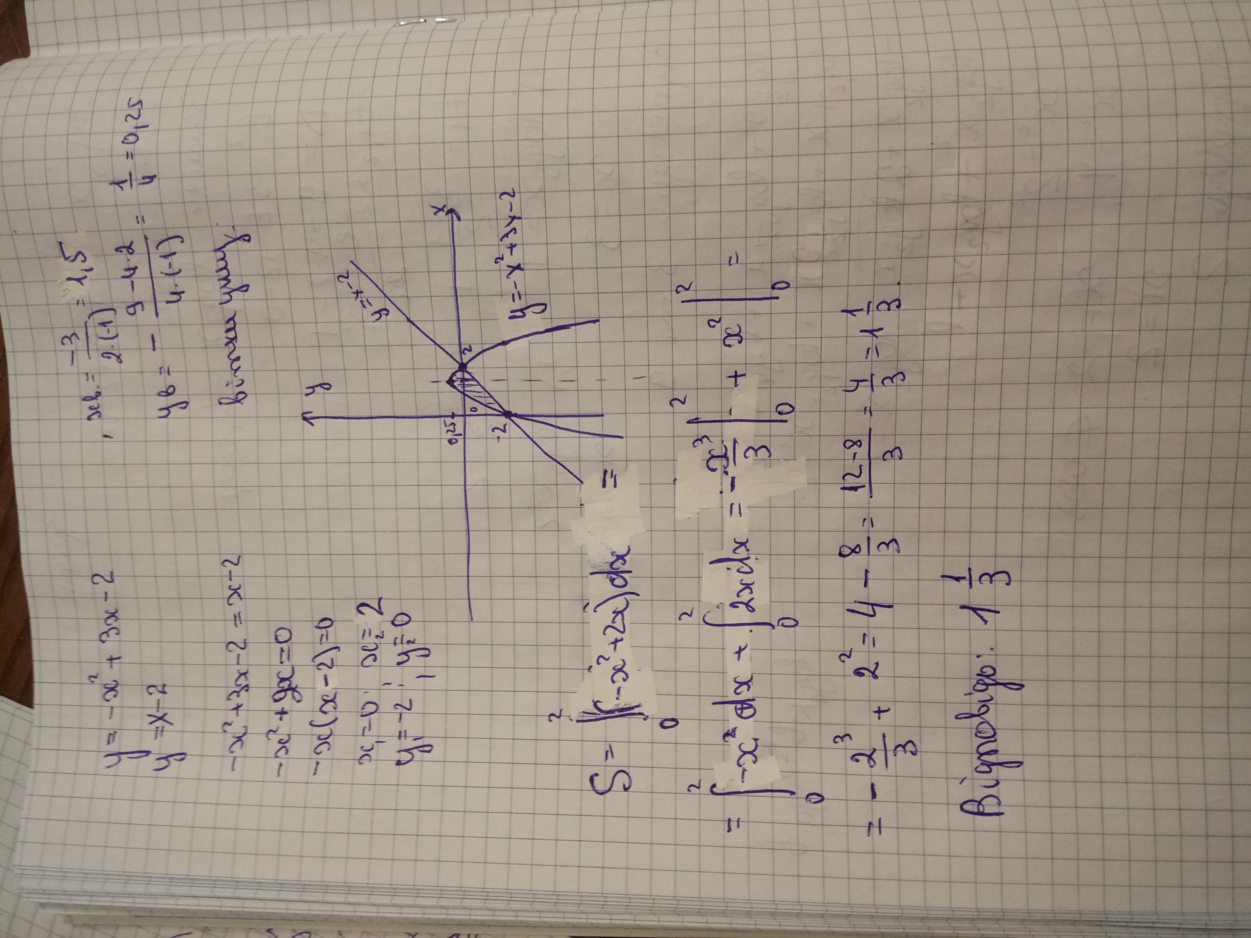 Ігрик дорівнює мінус ікс у квадраті плюс три ікс мінус два
