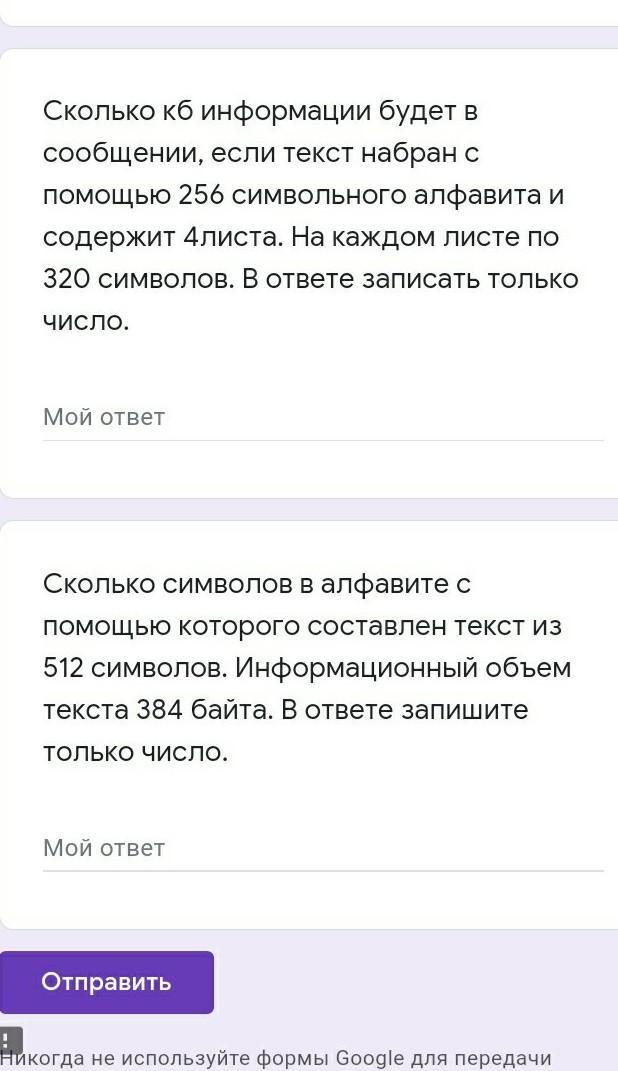 2. Информационный объем текста 384 байта. в битах это составит 384*8=3072 бита