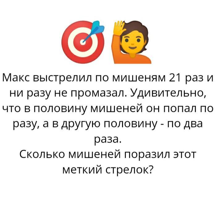 18:3=6 мишеней попал по 1 разу