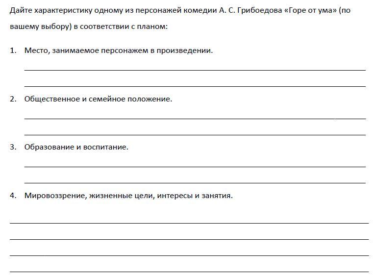 3.Александр Чацкий — сирота, одинокий человек.После смерти родителей Чацкий воспитывался в доме Фамусова. Является умным, остроумным мужчиной,красноречивым человеком, любит острить и "подкалывать" людей, но делает это не с целью навредить. За это София называет его "змеей".Он является насмешливым человеком, однако его насмешки всегда направлены против глупых и ограниченный людей.Судя по всему, Чацкий часто разговаривает с окружающими в резком тоне.По словам Софьи, невоздержан на язык и слишком откровенно презирает людей. Чацкий является гордым человеком, "гордецом".По словам Фамусова, является франтом, мотом и сорванцом.