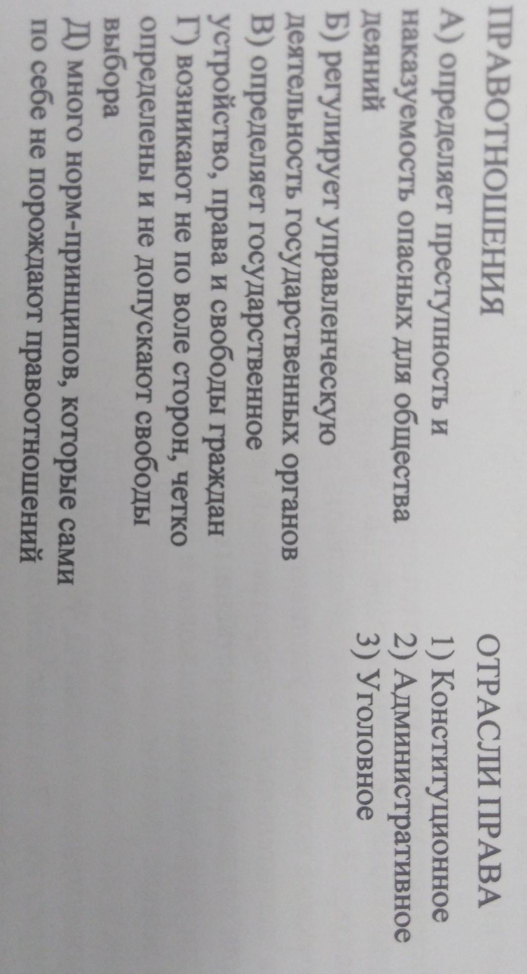 Установите соответствие между правоотношениями и отраслями права, которые их регулируют: к каждому элементу, данному в первом столбце, подберите элемент из второго столбца