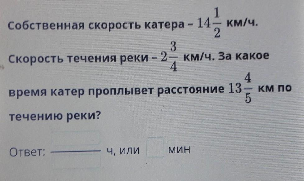 = 48 мин. - время, за которое катер проплывет расстояние заданное расстояние по течению реки.