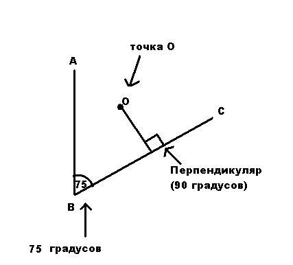 Начертите угол ABC равный 75градуса. Отметьте внутри угла точку О и проведите через нее прямую, перпендикулярную стороне BC.