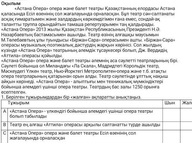 1. Берілген тұжырымдардан бір «жалған» ақпаратты анықтаңыз.