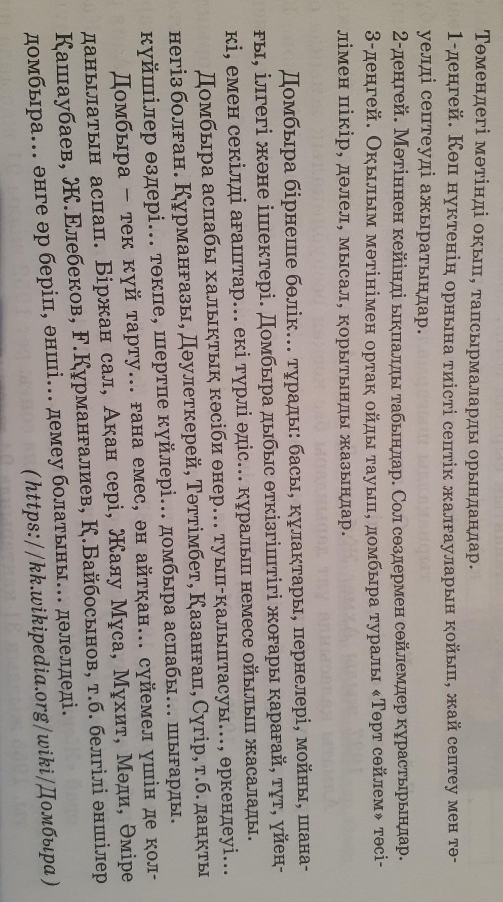 Төмендегі мәтінді оқып, тапсырмаларды орындаңдар.