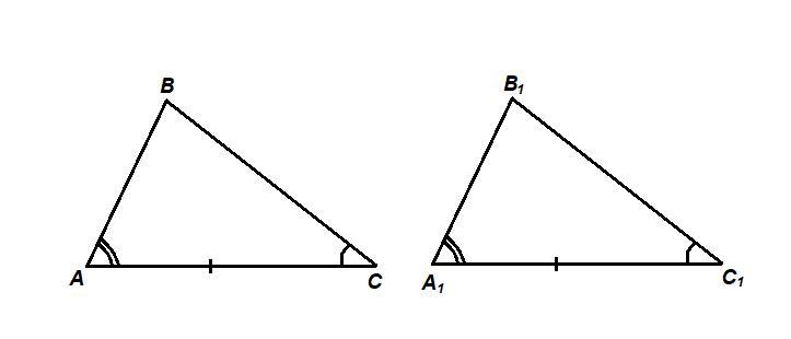 АС = А₁С₁, ∠А = ∠А₁, ∠С = ∠С₁