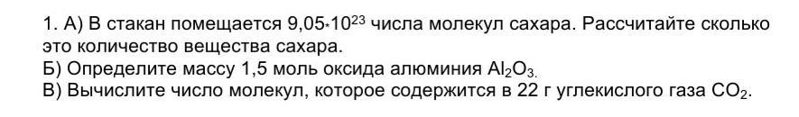 1) а) n = N / N А = 9,05×10²³ частиц / 6,02×10²³ моль в - 1 степени = 1,5 моль