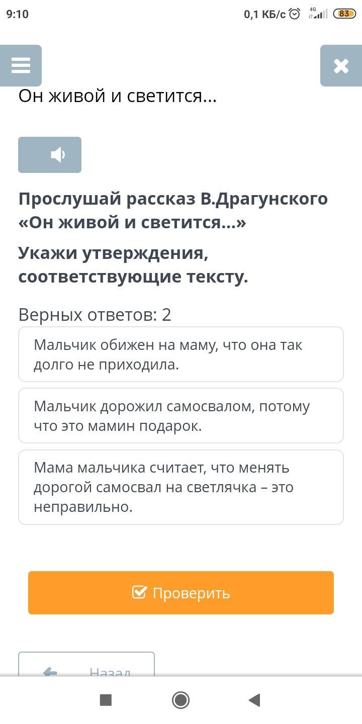 Прослушай рассказ В. Драгунского «Он живой и светится…».