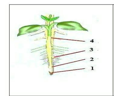 1 - Корневой чехлик, выполняет защитную функцию, увлажняет поверхность молодого корня, контролирует геотропизм.