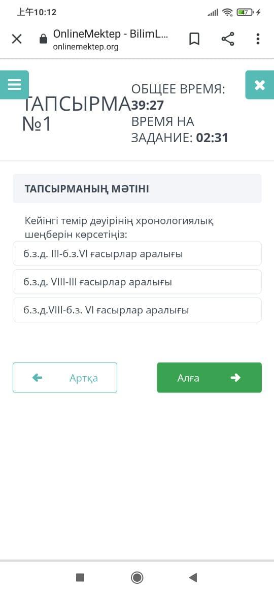 Кейингы темир дауиринин хронологиялык шенберин корсетиниз