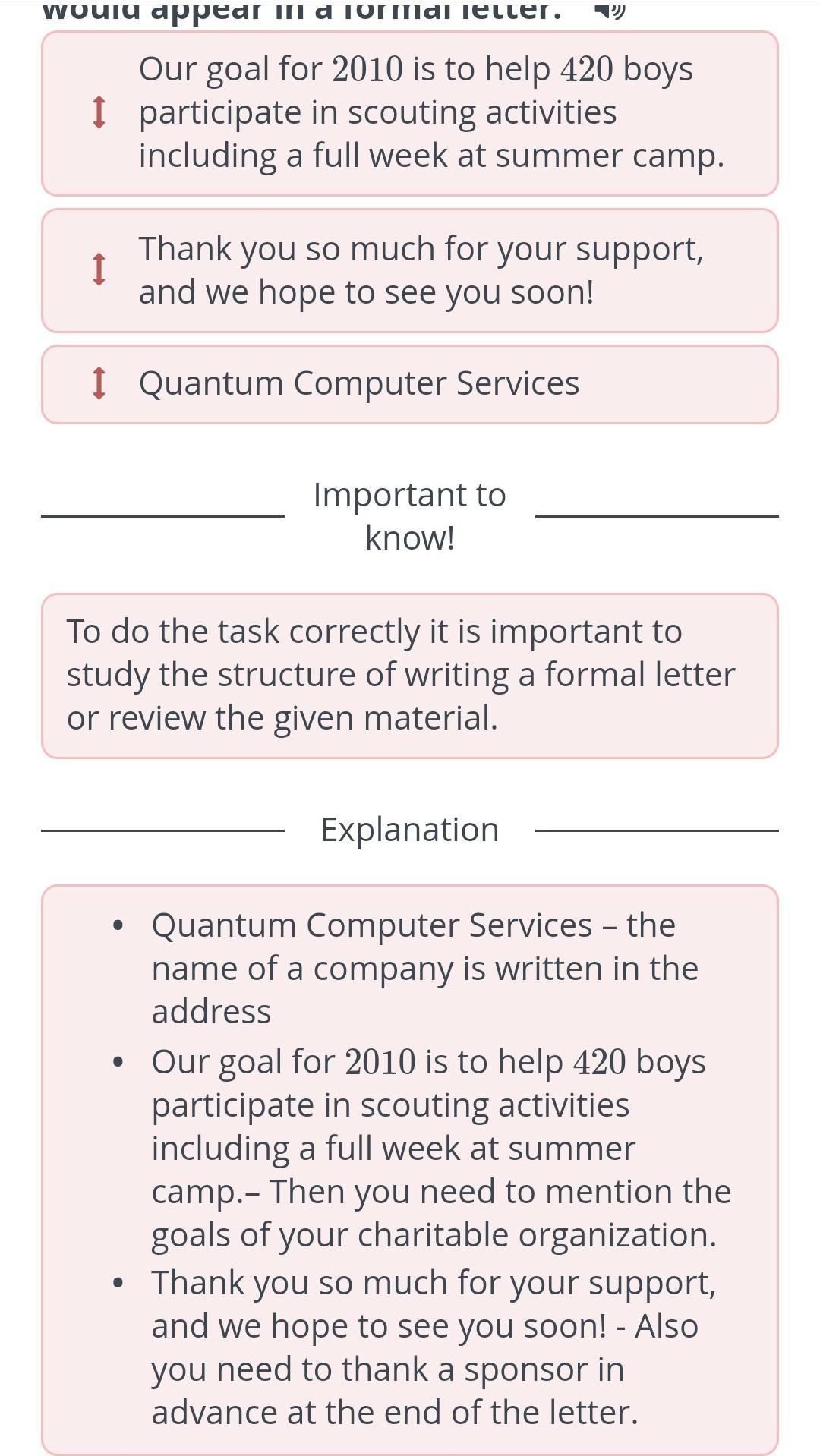 Drag the sentences into the order they appear in a formal letter