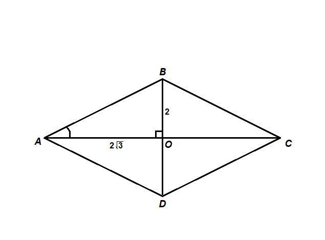 АО = 0,5 · АС = 0,5 · 4√3 = 2√3