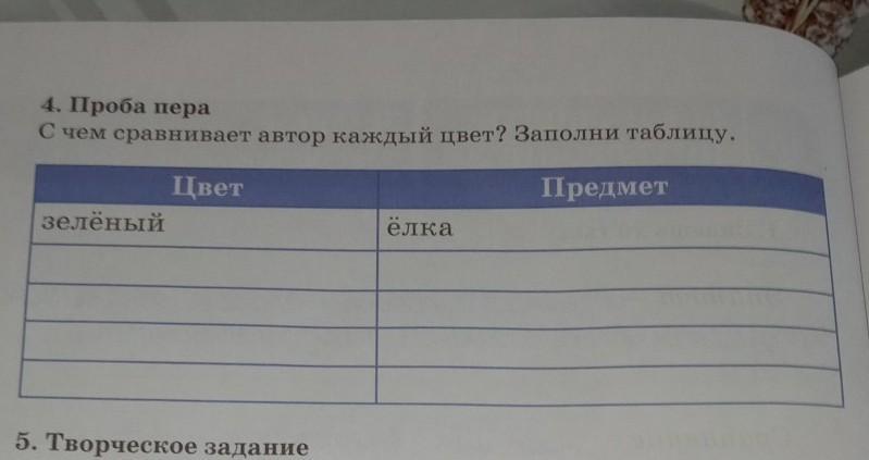 с чем сравнивает автор каждый цвет из стихотворения разноцветные дома заполни таблицу цвет зелёный предмет Ёлка