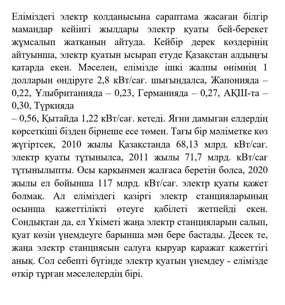 5. Мәтін мазмұны бойынша сұраққа жауап беріңіз.