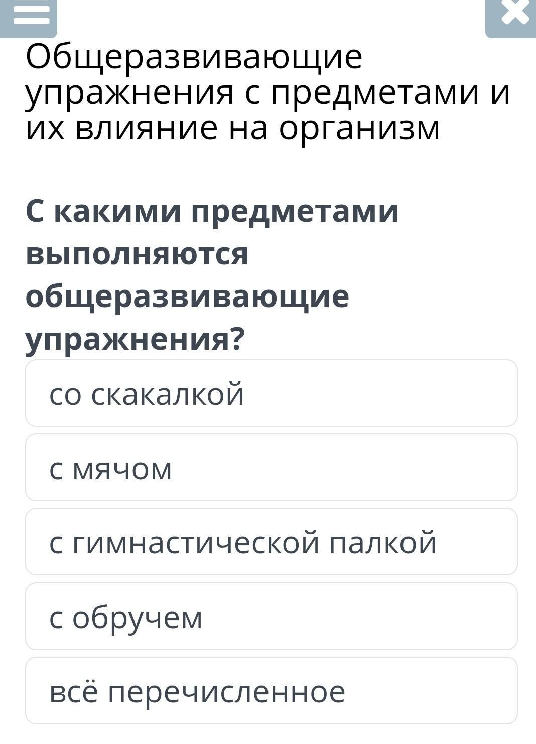 Все перечисленное т.к. каждый предмет помогает определённой группе мышц