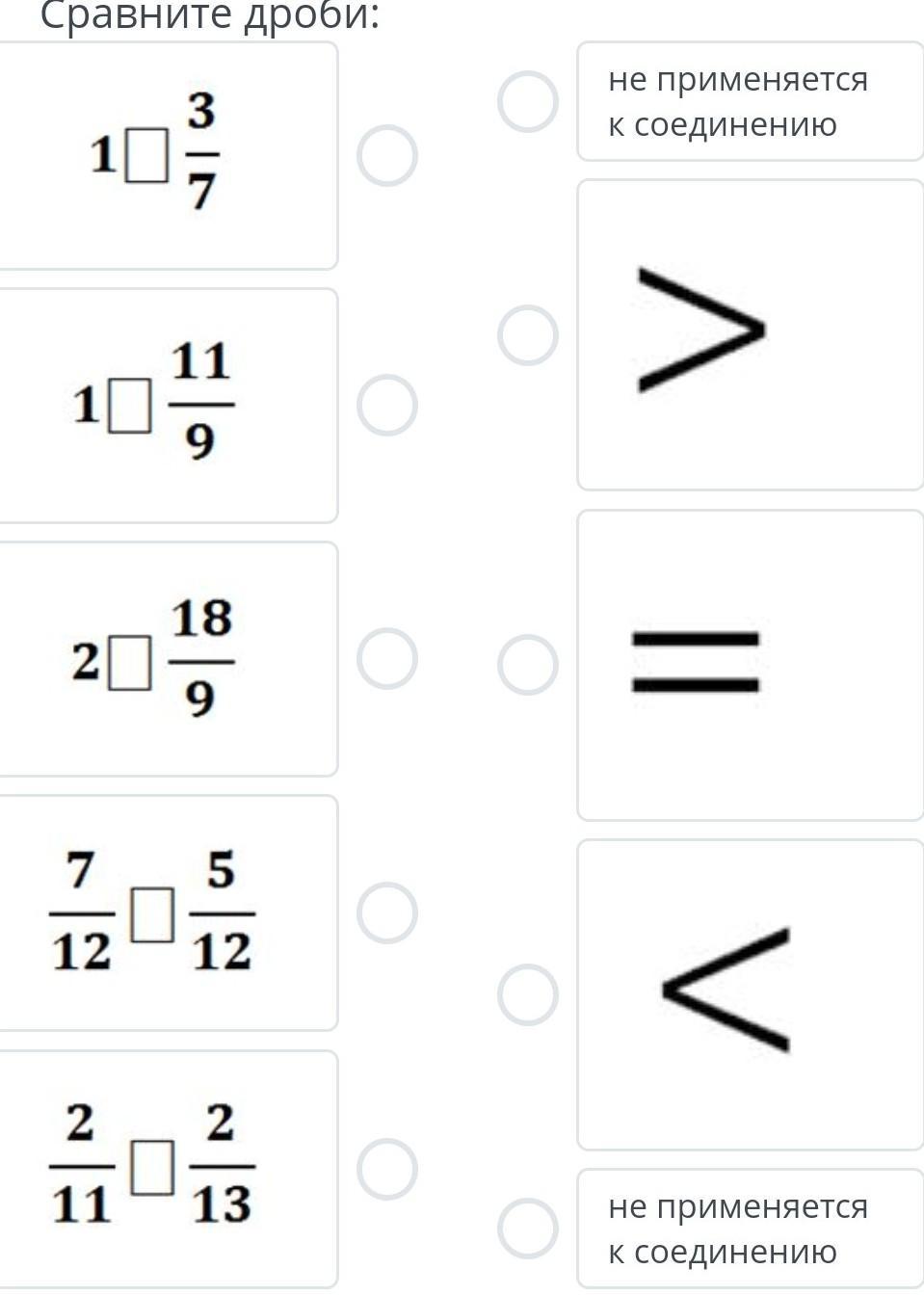 Пошаговое объяснение: в дробях где сравниваются целая и дробная часть ты должен(на) целую умножить на знаменатель и прибавить чеслитель :з а где сравниваются 2 дроби то бюольше та дробь у который знаменатель меньше. Где знаменатель одинаковый там и сравниваешь по числителям