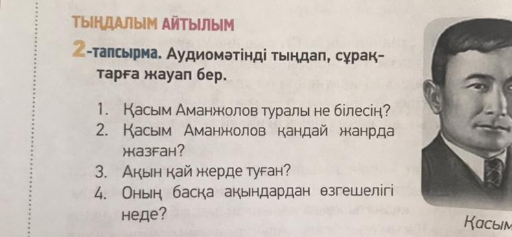 1.Қасым Аманжолов- көркем аударма өнерінің де үздік шебері. Қ.Аманжолов – өзінің батыл ойлы, шыншыл да терең сырлы, дауылды поэзиясымен әр буын оқырмандар сүйіспеншілігіне ие болып, жас таланттарға өте күшті әсер етіп келе жатқан біртуар дарын.