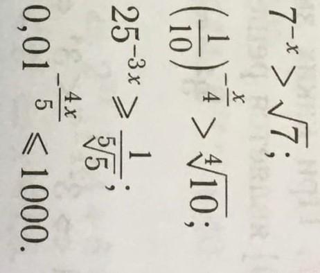 7⁻ˣ>√7; 7⁻ˣ>7^(1/2); -x>1/2; x<-1/2; x<-0,5; x∈(-∞; -0,5)