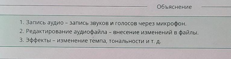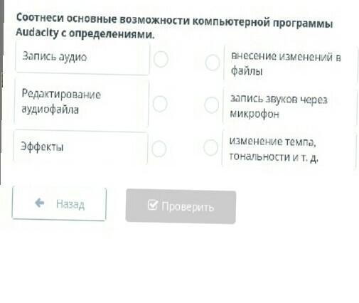 Соотнеси основные возможности компьютерной программы Audacity с определениями.