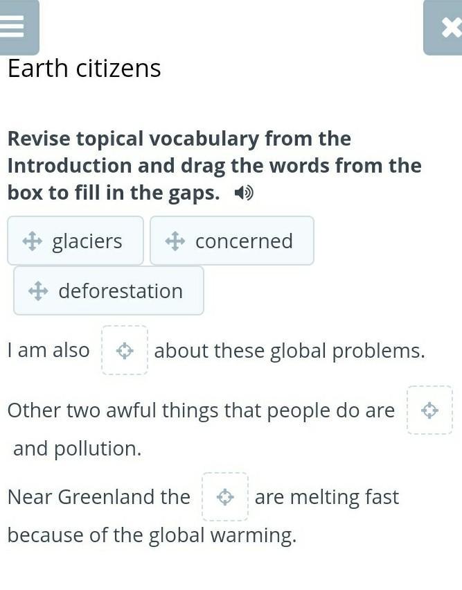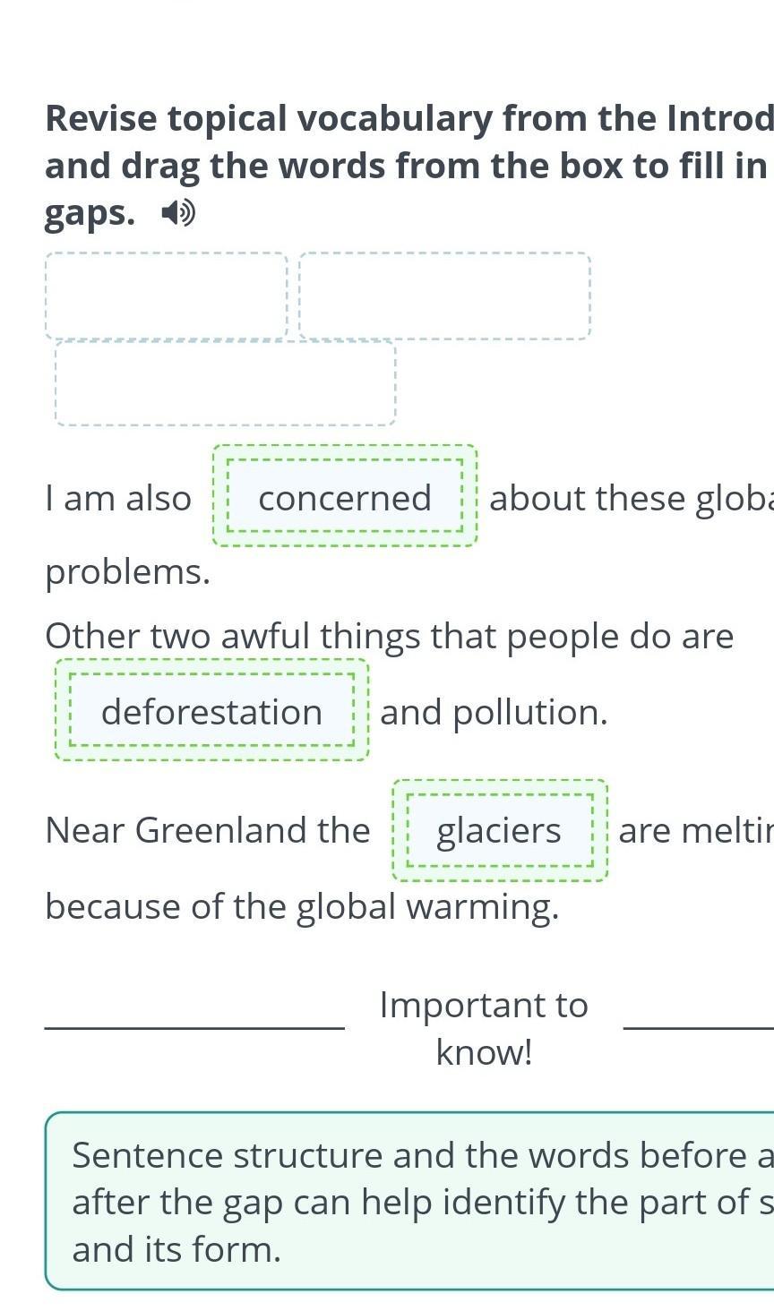 Revise topical vocabulary from the Introduction and drag the words from the box to fill in the gaps.