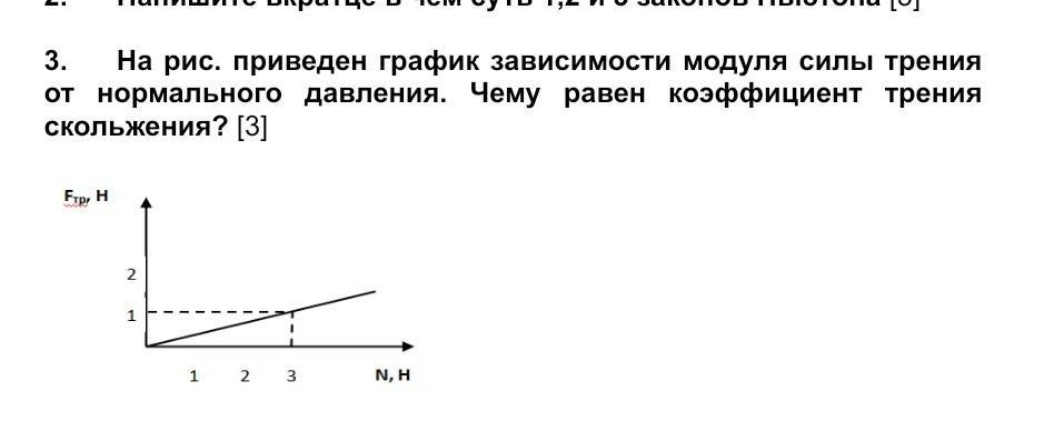 На рис. приведен график зависимости модуля силы трения от нормального давления. Чему равен коэффициент трения скольжения? [3]
