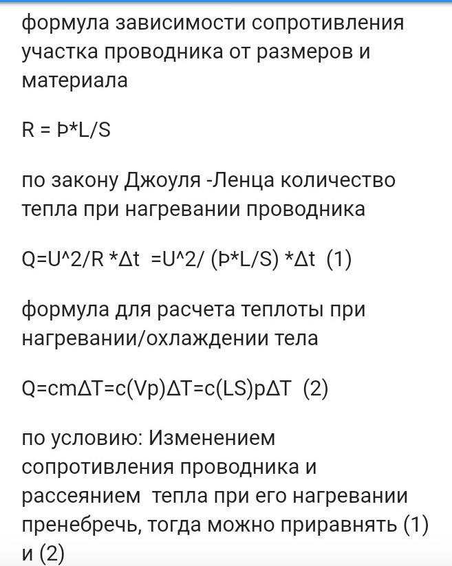 Какова длина медного цилиндрического проводника, если при его подключении в цепь с напряжением 1 В на 15 секунд его температура увеличилась на 10 К?