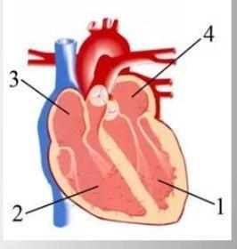 Какой цифрой на рисунке обозначена камера сердца, в которую кровь поступает из большого круга кровообращения?
